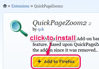 QuickPageZoom2 is a simple Firefox extension that helps to quickly zoom in/out webpages with mouse clicks. While browsing on Firefox browser, it provides an easy way to zoom web pages so that you can clearly view terms or text available in small font. It also integrates with context menu as well as provides zoom in/zoom out icons for add-on bar.