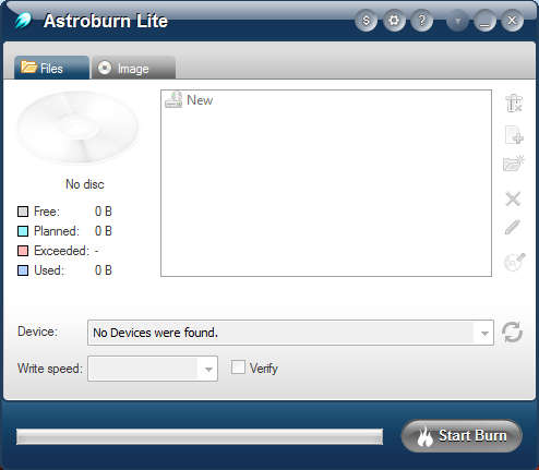 It might not be the most advanced burner, but if you are not a too demanding user, then there shouldn’t be any kind of problems with Astroburn. There aren’t options for burning more specific disc types, for example music, videos, pictures and so on, but with this basic free edition of Astroburn you can still do a lot, in fact you can even burn all of the previously mentioned disc types, you just might not have the formats that are normally created automatically by a program, like a film DVD.