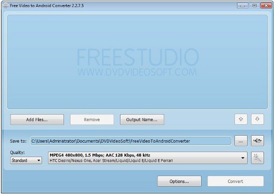 Free Video to Android Converter is a free application from DVDVideoSoft.com. It is a powerful and compact tool which converts any video to the format compatible with any Android device. It is lightweight application available for download from DVDVideoSoft’s official website.