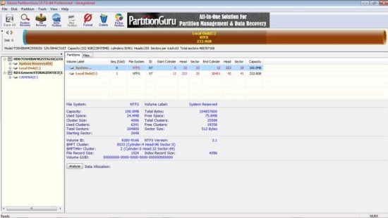 PartitionGuru has a number of advanced tools that provide you with a variety of useful information. There’s a data allocation table that allows you to see the level of fragmentation on your drive without running a different utility. Some of the other information that’s available from the software includes the overall capacity of the drive, the amount of space that is used and available, the total number and size of the cluster on the drive, used and free clusters, and a large amount of other information.