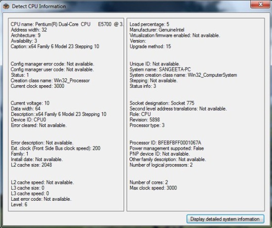 DetectCPU is a handy app to get detailed information on your system. It nicely identifies all available attributes of your system’s CPU, BIOS, and Motherboard, however the interface of the app could have been more user-friendly, like CPU-Z. Give it a try.