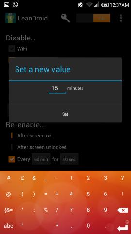 The last option is the ability of LeanDroid is to not connect to the internet at the set intervals when your battery is below a certain level.