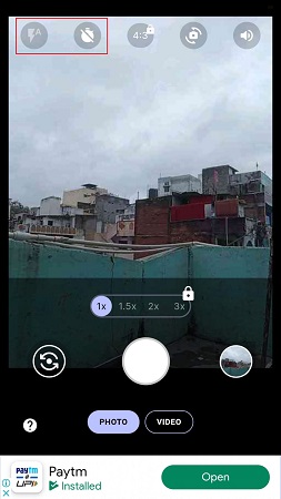 7. You can enable the Flashlight by tapping on the left-most icon in the toolbar. The second icon in the toolbar allows you to activate the Self Timer (3s / 10s).
