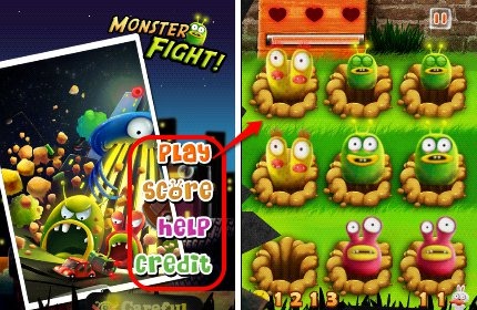 Monster Fight is a free and fun Android game app. You have to kill monsters by tapping on them as they pop up from holes in the ground. Single taps cannot kill every type of Monster. It needs skill to kill these naughty monsters. Some need to be tapped twice, some jump when they are tapped on and sometimes even their babies and twins appear. Kill many monsters as quickly as possible. Avoid tapping on other things like plants or you lose a heart. Also, collect hearts, coins, and rabbits to unlock more levels. Have fun playing the challenge mode or the endless mode.