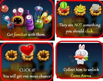 To start playing Monster Fight Android game, click on Play from the main page of the game app. You will find three scenes, plus a Coins Arena, and an Endless mode. Initially only scene one can be played. You have to unlock all others by collecting coins. The mini games in the Coins Arena can be unlocked by collecting cute small rabbits that hop on the screen between the each game level. More and more levels are unlocked as you play the game. Be sure to collect hearts, and kill the monsters.