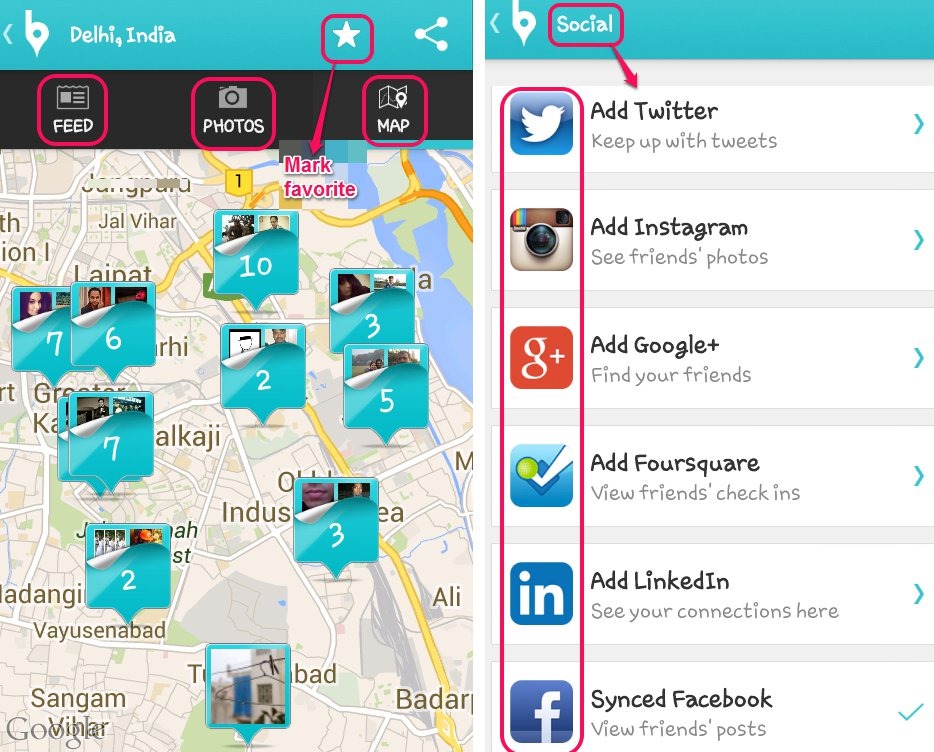 Banjo is a free app for Android devices that provides you with a platform to view data from all social networking sites together. You can integrate all famous social networking sites like Twitter, Instagram, Google plus, Facebook, Foursquare, LinkedIn, and update them from inside this app. You can also view friends activity in Banjo Feeds and save or share the pictures. The app also has feed related to News, Sports, Music, and people around you. The app lets you mark favorites and access them anytime you want. You can also view beautiful pictures of events going on in different countries of the world. It also allows you to chat with friends.