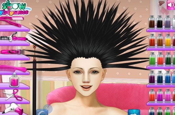 This is the starting point from where you’re gonna have to do your magic and salvage the situation. There’s various different tools like scissors, curling irons and dryers on the left to help you take control over the apparently electricity inspired hair style from the image above.