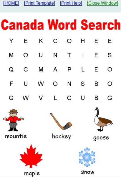 From this screen you can print the word search game shown on your screen. Once you print the puzzle, you can close the window and return to the main website.