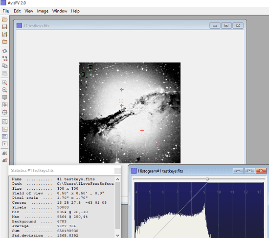 Download this software from above link and then simply open it up. After that, open a FITS file in it and then analyze it. Use the View > Statistics option to see essential parameters about the image. And you can open the histogram of the image as well from the toolbar on the left. Additionally, there are other tools to view the different elements of the image like zoom, pan, etc. Also, you change the brightness, contrast and color settings to view the image in any way you want.