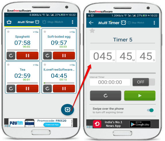In this article, I have compiled a list of 5 free multi timer apps for Android to run multiple timers at once. From these multi timer apps for Android, you can set multiple timers for different tasks and run them simultaneously. You will be able to set a timer as short as about 15 seconds and as long as up to 99 days. Some of the multi timer apps also give you the option to set recurring multiple timers at once. In addition to these features, you will be able to control all of the set timers at once i.e. you will get the option to pause, stop, reset, etc timers at once. If you want to group your timers into multiple categories then some of the multi-timer apps will let you do it with ease.