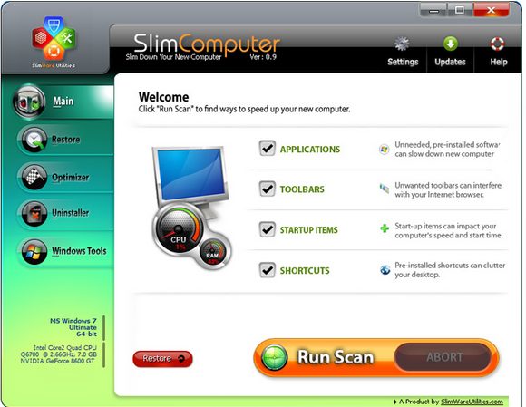 SlimComputer is a standalone free software which allows you to remove unwanted and pre-installed software from your new computer. When you buy a new computer, it comes with several pre-loaded software which are not useful. So with the help of this free software you can remove all the unwanted preloaded software from your new computer. You can even restore the programs, in case if you delete any software accidentally. Download SlimComputer for free.