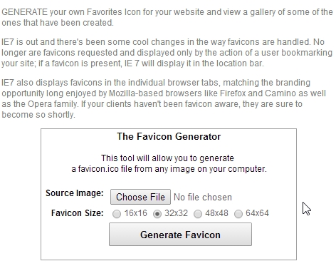 Generating a favicon is equally easy as you just have to upload an image, select size, and your favicon is ready. The website supports multiple image formats including jpg, png, gif, bmp. Try it out from link given above.