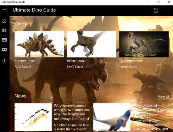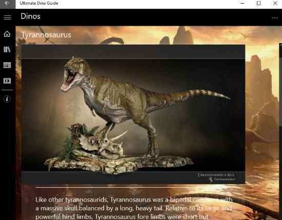 This article covers 5 free Windows 10 dinosaur apps and games. Kids love dinosaurs and everything related to them. Though these majestic creatures might be extinct but the craze among people to know more about them keeps growing. This article includes some nice apps on dinosaurs which provide you more information on these creatures as well as allow you to play dinosaur games. Some apps included are purely information based, whereas some are for kids where they can color and do various activities involving a dinosaur, and then there are some dinosaur games in there as well.