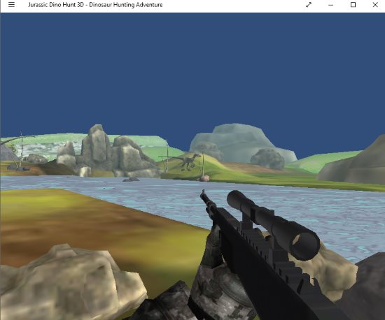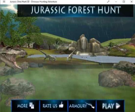 Jurassic Dino Hunt 3D is a free dinosaur shooter game. The game app is quite fun and can be enjoyed by any age group. The home interface of the game can be seen in the screenshot above. Click on the play button to start the game. You will be shown a objective of the game. When you start the game you will see a screen like the one seen in the screenshot below.