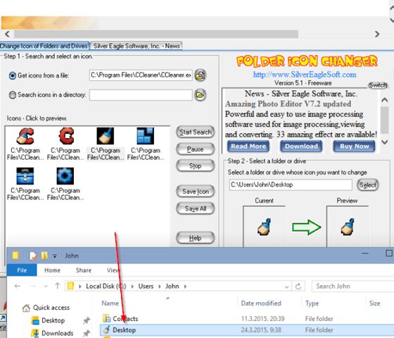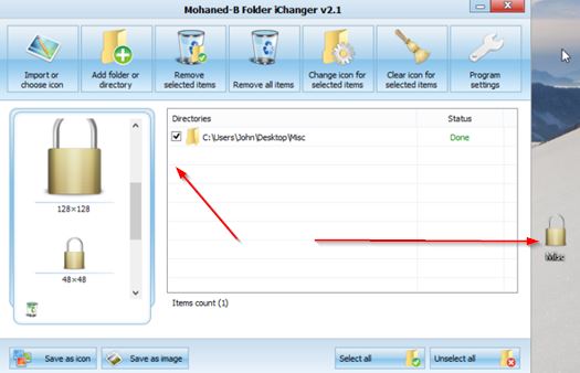Load up the icons and select all the folders whose icons you want to see changed (it’s also possible to change sub-folder icons). Click “Change icon” from the top toolbar to start the conversion process. Drive icons (as in “Local Disk C” icon) can also be changed using Folder iChanger.