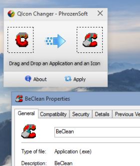 QIcon Changer uses drag and drop to load up the executable whose icon you want to change and the icon you want to apply. It’s very simple and to the point, see image above.