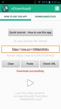 vDownloadr can be used to download videos from Vine in two different ways. One is by manually copying and pasting the share URL of the vine you want to download, and the other is by directly sharing the vine into vDownloader from the official Vine app.