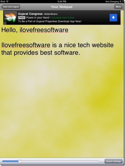 Password Notepad is a free iPad app which provides password protected notepad on iPad. This notepad for iPad lets you make your notes secure by enabling the password on the notepad app.