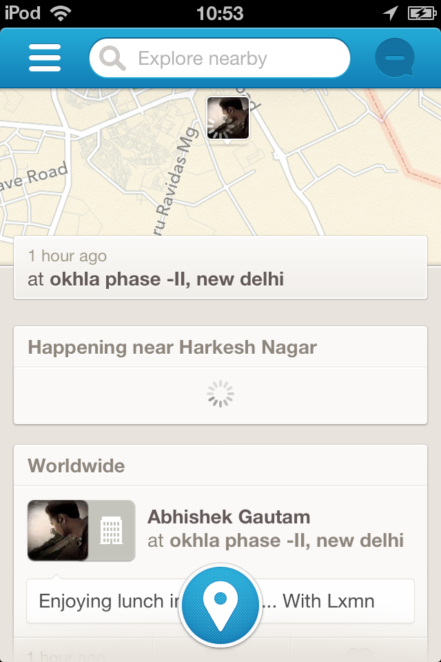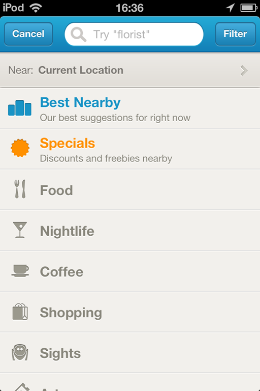 When you visit any place Foursquare checks your current locations using GPS of your iPhone and tells you your exact location and tells you what is “Happening Near You?”