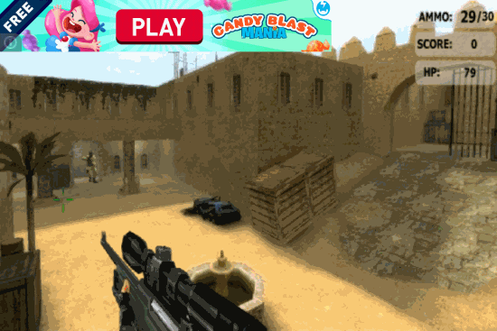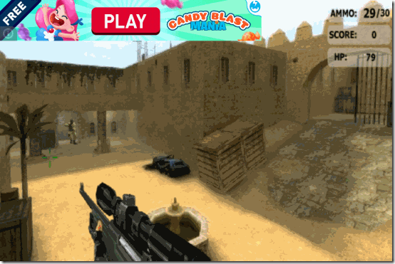 The second last game in the list is Sniper Shooting. This game has 3 different scenes for you to choose. All these scenes are somewhat a copy of Counter Strike’s map locations. In this game, you have to kill the maximum number of enemies before they kill you. When the game gets finished, you can check the stats like Score, Headshots, Shots, and Accuracy. The game is a little more difficult to play as compared to other games in this list but its fun once you master the game.