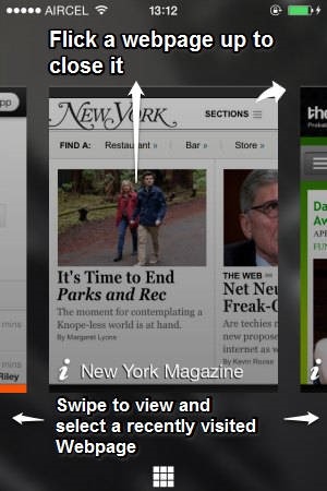 As illustrated by the above screenshot, you can also close webpages from the switcher view. To do this, all you have to do is flick the webpage that you want to close up wards. Simple as pie!