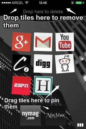 Removing pinned tiles is also easy. Simply tap and hold on any tile till all of them start jiggling. Once they do, drop the tiles you want to remove over the top area that says Drop here to delete. As simple as that!