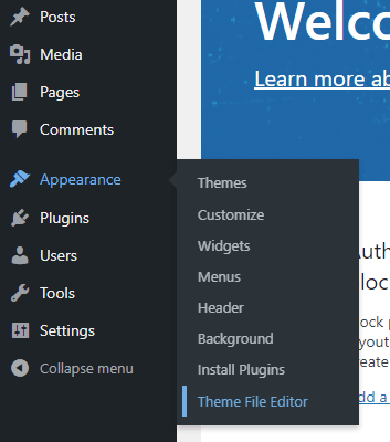 - Login to the WordPress Dashboard and then go to the theme editor. To do that, you go to Appearance > Theme File Editor.