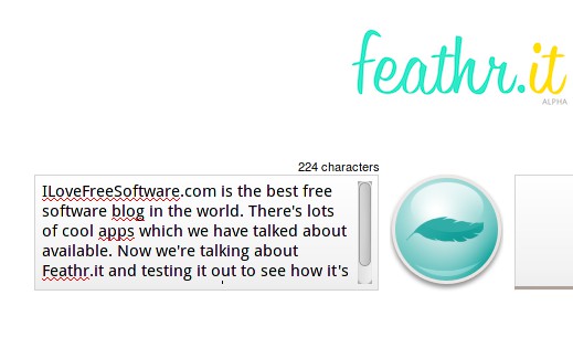 Text which is shortened on Feathr.it doesn’t necessarily have to be used on Twitter, you can simply copy the text and easily use it in other messaging services. Before you can do that, the first step that you need to take is to enter the text that you want to shorten in the left box.