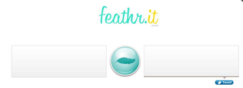 Image above is the first step of tweet text shortening service offered by Feathr.it. Left side is where you can type or copy/paste the text that you want to shorten, and the right side is where the shortened text, the one that’s 140 characters or less is gonna go. Button in the middle is the button which will start the shortening process or “feathering” of the text that you’ve entered.