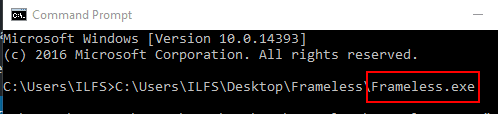 Step 3: Now to add an image watermark with adjusted opacity on desktop screen and with always on top parameter, you need to provide the source path of the image with transparency value and always on the top parameter. So, your command would be: Frameless.exesource path of image along with image extension (like PNG, JPG, etc.)” trans=0-255 aot=yes.