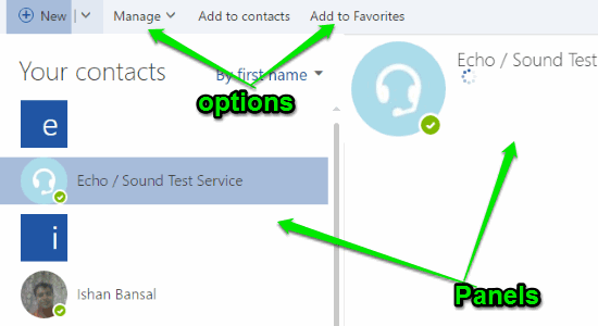 Step 3: When you’re done entering all the details, simply click on the “Save” button at the top to add the new contact in Outlook People app. All the added contacts will be visible on the “Your Contacts” panel, as shown below. One more thing, it will also display all your Skype contacts automatically on the panel and you can add them to Outlook People contact list if you want.