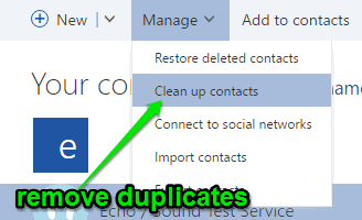 Step 1: To remove duplicate contacts, simply click on the “Manage” drop-down menu at the top. After that, you need to click on the option “Clean Up Contacts” to proceed.
