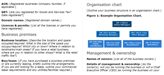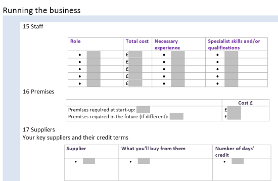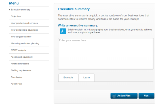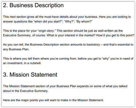 All the sections have list of points with each point asking you a few questions. You have to answer the questions in order to write the business plan.