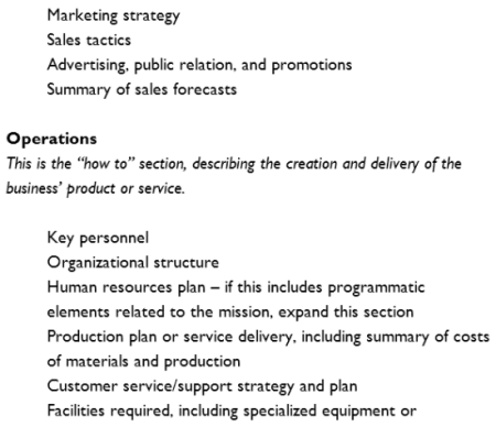 The business plan template offered by NonProfitAssistanceFund is pretty small as compared to the ones provided by others. The template offered by them consists of sections like Mission, Executive summary, Market analysis, Competitive analysis, Productive/services, Marketing and sales, Operations, etc.. For each of them, the template includes brief points which will help you find out what you have to fill and where. There is also a brief explanation regarding the purpose of each of the section.