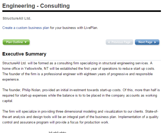 On clicking any business plan, the website shows you the plan outline which you can refer to know what are the things included in it. Generally, a business plan template includes Mission, Key to Success, Company Summary, Products, Market Analysis Summary, Management Summary, Financial Plan, etc.. Although, the main content of each of the section will vary on the basis of the business type chosen by you, but the basic overview of the each of the business plan is same.