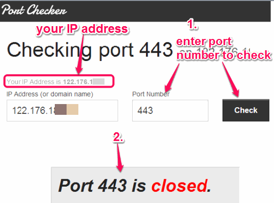 Port Checker is a free online tool to check which ports for your PC are open or close. It uses your PCs external IP address to detect open and closed ports.