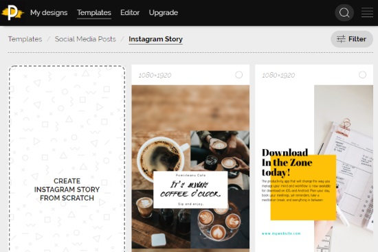 PixTeller is another free website to create animated Instagram video stories. On this website, you can design the animated from scratch or use the templates. To create an animated story, you can follow the steps mentioned below.