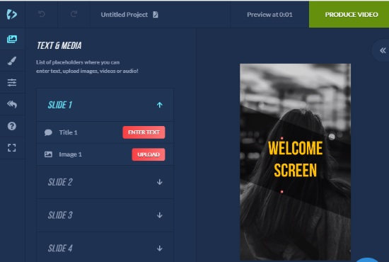 Wideo is a very similar platform as the above-mentioned sites. Here, you can need to choose the size of the video story template and then you can create animated Instagram stories online.