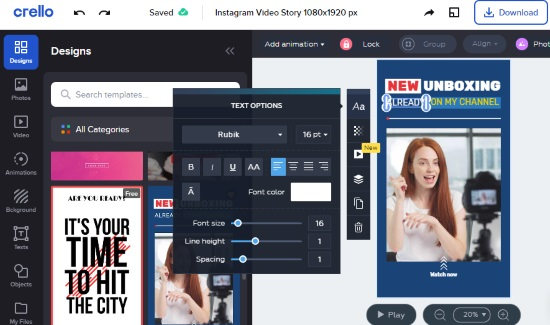 Crello is the platform where you can make animated stories for your Instagram account. This is basically a platform where you can create social media graphics for multiple social media channels.