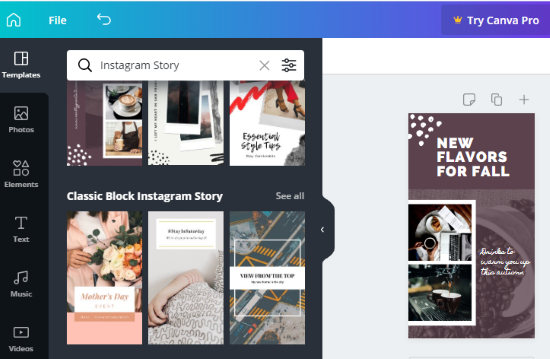 Canva can be considered the best website to create animated Instagram stories online. This online platform allows you to create social media graphics including Instagram stories. In order to design an Instagram story, you can follow the mentioned steps below.