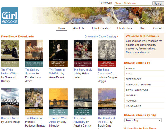 Girlebooks is a free website that helps to download free eBooks written by female writers. All books available in this website are DRM (Digital Rights Management) free. You can download those eBooks in PDF, ePub, PDB, LIT (can be opened by Microsoft Reader), and Kindle/Mobipocket PRC format. Hundreds of eBooks are available which you can browse by author, romance, American Literature, British Literature, mystery, etc.