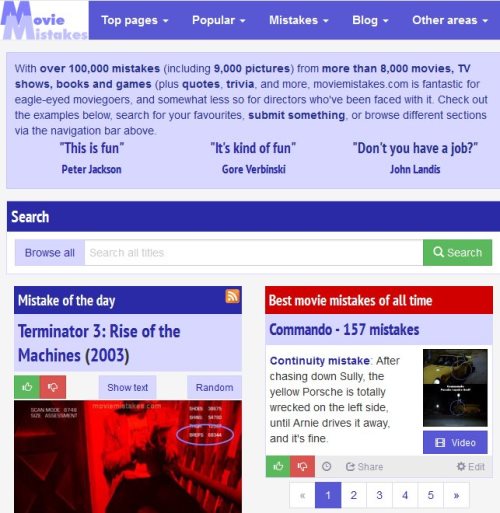 Movie Mistakes is a fun website if you are a movie buff and like to know if there were any mistakes made on part of the director or the crew. I always try to read about a movie I watched. When I stumbled to this website, I was amazed that awesome blockbuster movies also had mistakes in them. And after reading the mistakes, no doubt I had to watch them again to notice them. Finding this great site made me realize that how little do we notice the finer details in the movies, which other people do. They must be crazy fans of the movies to notice such itty bitty things.