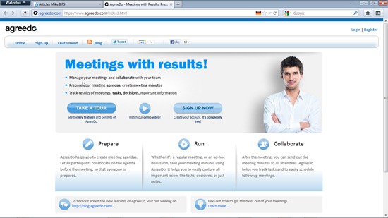 AgreeDo is free online collaboration website or meeting platform. Almost everyone in the business world needs to attend meetings from time to time. These meetings can be quite expensive to hold, when prospective attendees are in different parts of the country or, even worse, in different countries. Online collaboration software makes holding meetings much easier. AgreeDo wants to be that online collaboration software for you, but falls very far short of that goal.