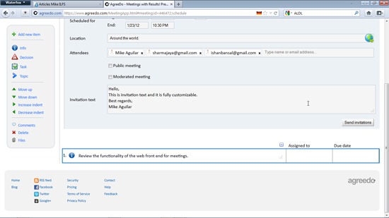 Everything about AgreeDo is web-based. That means there’s nothing to install. Register at the site, confirm your email address, and you’re ready to go. No installation means there’s a limited claim to your system’s resources.