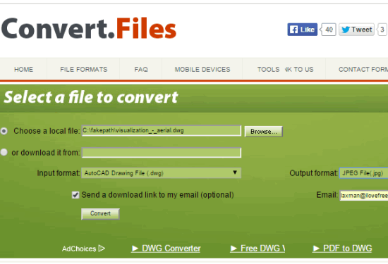 Convert.Files is one of the best website in this list. Apart from converting the DWG files, it supports many other formats, such as: doc, xlsx, xls, dxf, ePug, fb2, mobi, audio video files, images, etc. So it can be used as an all in one file converter. However, only one file at a time can be converted.