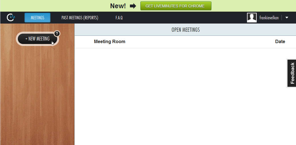 The real interface of Live Minutes, more precisely the real interface of the meeting room can be seen when you actually enter it, but before you’ll be able to do that, you first have to create the meeting or be invited to a meeting created by someone else.