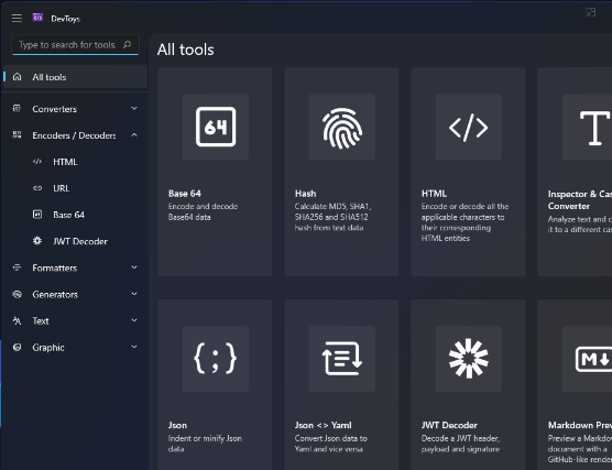While programming, you usually have to take some help of extra tools. And you often use the online version of those tools. But if you have DevToys installed, then you will not have to do that. Whenever you need to test a regular expression or convert JSON to YAML, DevToys is just a couple clicks away. All the tools that it has to offers are available under the different categories and menus.