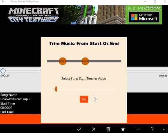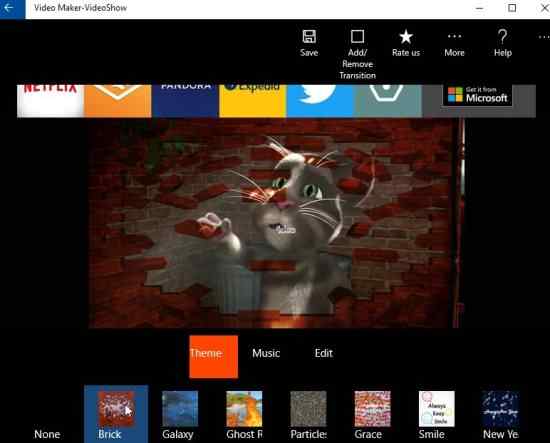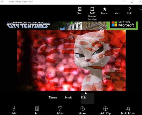 Video Maker – VideoShow is a nice Windows 10 video editor app with lots of effects which can be added to your videos or photos. The only issue I had was it got a little buggy in between and I had to close and restart the app. Other then that the worked fine with all the themes, filters, transitions, etc.