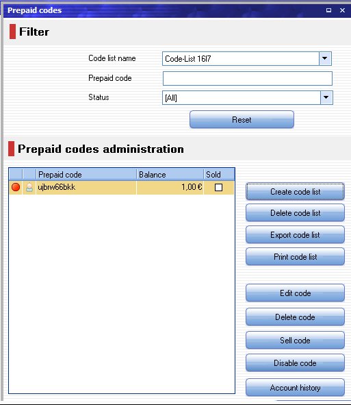 To make it easier for your guest to create accounts and buy services when they use the client computers, you should create pre-paid codes. That way they can for example buy a 20$ worth of credit and spend it buying drinks, services and so on. Select Edit >> Prepaid Code from the main menu of the server app.