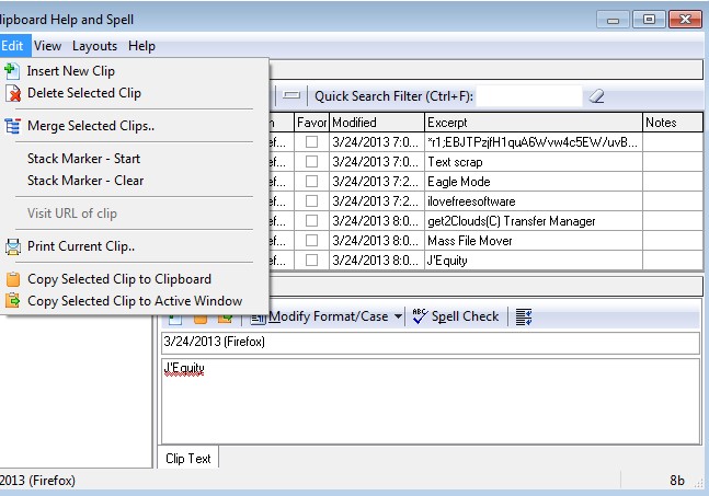 Left click will open up the quick access to all the items that you’ve added, while double click will open up the main interface. Something interesting that’s available in Clipboard Help+Spell is the Stack operation, where you can save multiple clipboard items and then paste them all together at once. Open up Edit >> Stack Marker Start to activate it.